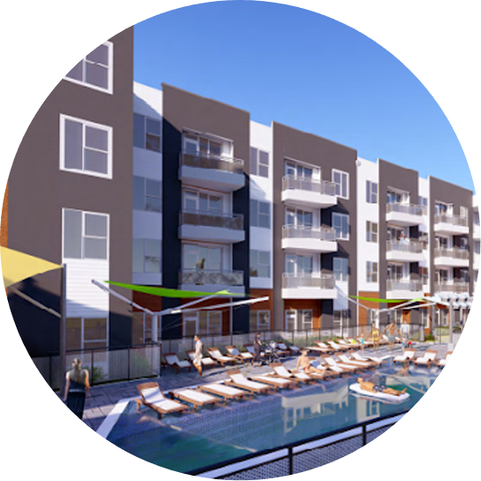 Vue has 1, 2, and 3 bedroom apartments with open-concept floor plans.